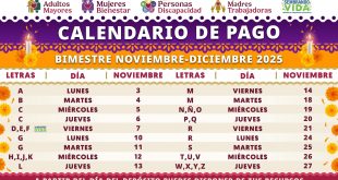 Del 3 al 27 de noviembre, pago de Programas para el Bienestar
