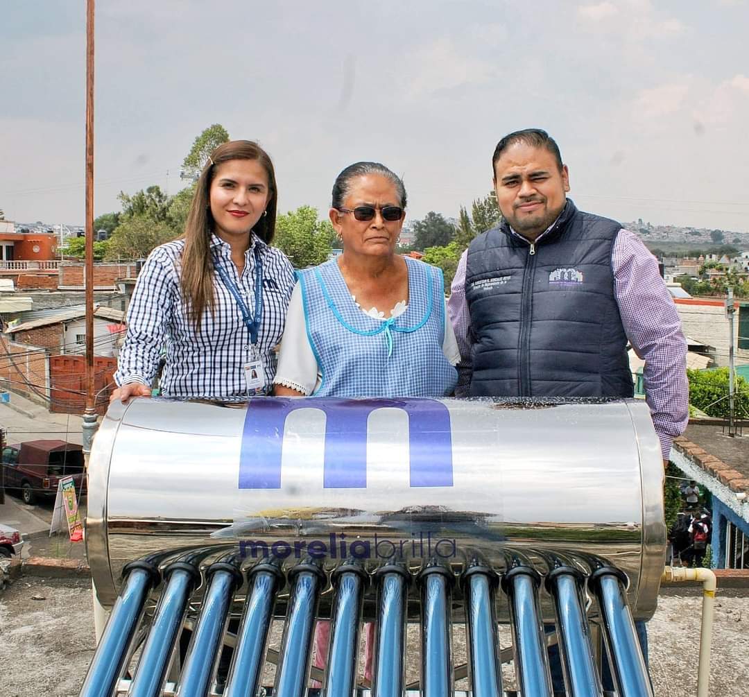 Morelia, Michoacán, 1 de junio de 2023.- Con la finalidad de brindar a la sociedad moreliana la posibilidad de optimizar sus gastos y otorgar un beneficio a su economía, el Gobierno de Morelia que encabeza el presidente Alfonso Martínez Alcázar, a través de la Secretaría de Bien Común y Política Social, inició con la entrega de calentadores solares a 650 familias morelianas. A través del programa “Equipamiento e instalación de calentadores solares”, que desarrolla la Dirección de Mejoramiento de la Vivienda, más de dos mil 500 personas serán beneficiadas a través de este apoyo que representa un 75% de ahorro en el consumo de gas. Al respecto el secretario de Bien Común y Política Social del Gobierno de Morelia, Adolfo Torres Ramírez, expuso que fueron beneficiadas familias de bajos recursos que hicieron su solicitud a través de los cuatro Sectores de Morelia o directamente en la dependencia municipal, principalmente de colonias como Las Flores, El Porvenir, Felicitas del Rio, Colinas del Sur, Tenencia Morelos, Los Encinos, Rector Díaz Rubio, Constitución de 1857, Eduardo Ruiz, Prados Verdes, Ampliación Solidaridad, Vicente Lombardo, Isaac Arriaga, División del Norte, Puerto de Buena Vista y La Primavera. En ese sentido, agregó que con una inversión de cerca de nueve millones de pesos, se inició con el equipamiento e instalación de los calentadores en hogares de colonias como Unión Santa Cruz, Mariano Escobedo, Leandro Valle, 23 de Marzo, Solidaridad, Torreón Nuevo, Granjas del Maestro, Ampliación Gertrudis Sánchez, Gertrudis Sánchez, Melchor Ocampo, Emiliano Zapata, José María Morelos, Carlos Salazar, Infonavit La Colina, Jardines De Guadalupe, López Mateos, Guadalupe Victoria, El Reparo y Lomas De Hidalgo. Finalmente añadió que el uso de nuevas alternativas de consumo no sólo representa un ahorro en la economía de las familias, sino un avance en el cuidado del medio ambiente, pues con el uso de dicho equipo se evita el desperdicio del agua.