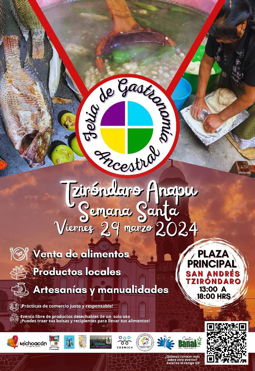 Morelia, Michoacán, 22 de marzo de 2024.- San Jerónimo Purenchécuaro y San Andrés Tziróndaro, ambas comunidades de Quiroga, están listas para realizar sus Ferias de la Gastronomía Ancestral, enmarcadas en la Semana Santa. Estas actividades se realizarán en la plaza principal de ambas comunidades el próximo 29 de marzo de 13:00 a 18:00 horas, comentaron organizadores desde la Secretaría de Turismo de Michoacán (Sectur). “La inauguración de las ferias la haremos a las 08:00 horas con la bendición del cura que solicitamos las cocineras. A partir de las 13:00 horas estará la venta de alimentos donde también se prepararán mil 80 litros de atole de tamarindo que se regalará a los asistentes”, comentó Eva Linares, cocinera ancestral y comunera de San Jerónimo Purenchécuaro. Los asistentes podrán degustar gastronomía típica de la región que prepararán aproximadamente 20 cocineras y cocineros en cada comunidad. Además estarán presentes artesanos que ofertarán productos elaborados en la comunidad y en la región, sin olvidar la participación de productores locales que tendrán venta de frutas, verduras y alimentos cosechados y elaborados en la comunidad. Los platillos que las cocineras ancestrales prepararán para venta, tendrán como base el pescado, sus derivados y productos locales con la intención de respetar la Cuaresma. De igual forma invitaron a los asistentes a llevar su plato y su vaso con la intención de evitar los desechables y el plástico. Finalmente señalaron, en el marco de las festividades de Semana Santa 2024, en las comunidades de San Jerónimo Purenchécuaro y San Andrés Tziróndaro, se realizará el viacrucis, la Procesión del Silencio, la interacción con Judas. Todos los detalles pueden ser consultados en el Facebook: Ferias de Gastronomía Ancestral.