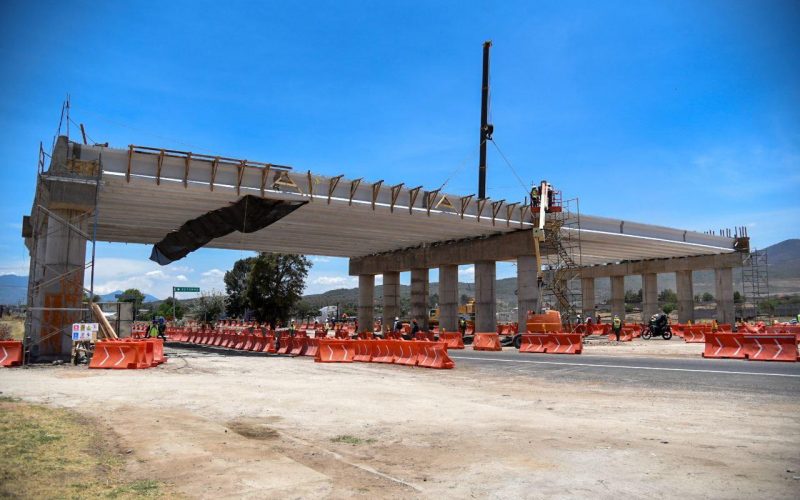 Morelia, Michoacán, 13 de junio de 2024.- La Secretaría de Comunicaciones y Obras Públicas (SCOP) avanza en la construcción del primer segmento del segundo anillo periférico de Morelia, donde se calcula que el tránsito diario será de 6 mil 700 vehículos en promedio, a una velocidad máxima de 110 kilómetros por hora. Al realizar un recorrido de supervisión, el titular de la dependencia, Rogelio Zarazúa Sánchez, expuso que este trayecto inicial de 13.4 kilómetros de longitud quedará concluido en febrero de 2025 para conectar a las salidas Pátzcuaro y Quiroga; contempla una vialidad tipo A2 de 60 metros de ancho, con acotamientos en ambos costados, dos entronques y tres estructuras. En el entronque La Estancia de la carretera federal Morelia-Pátzcuaro, la SCOP ya hizo el montaje de 14 trabes de concreto reforzado, cada una de 26.60 metros de largo, que en total suman 420 toneladas de peso y servirán de soporte para el paso inferior vehicular. Además, esta misma semana se colocarán siete más, al igual que se realizarán trabajos de excavación y colado para obras de drenaje. Al tratarse de infraestructura con financiamiento multianual, sin endeudamiento, el Gobierno de Michoacán garantiza la inversión necesaria para completar la construcción de la etapa en proceso, y posteriormente desarrollar trabajos de conservación y mantenimiento permanente hasta 2027, es decir, al término de la presente administración estatal. El segundo anillo periférico de Morelia constará de siete segmentos que integrarán un circuito de 87.8 kilómetros lineales de longitud; establecerá los límites de expansión de la ciudad y se construye con perspectiva a futuro sobre el posible crecimiento de la vialidad.