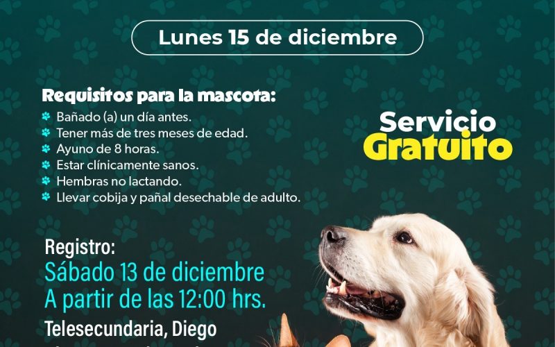 Morelia, Michoacán, 11 de diciembre de 2025.- La Secretaría de Salud de Michoacán (SSM) invita a la población a participar en la jornada gratuita de esterilización de perros y gatos, el próximos lunes 15 de diciembre en el municipio de Tarímbaro, como parte de las acciones de salud pública para fomentar la tenencia responsable y controlar la población animal. Los interesados deberán registrar a sus animales, el sábado 13 de diciembre de 2025, a partir de las 12:00 horas, en la Telesecundaria “Diego Rivera”, ubicada en el Fraccionamiento Las Espigas, a fin de asegurar su lugar el día de la jornada. Asimismo, la SSM recuerda que el día de la intervención, los animales deberán ser presentados con un ayuno de sólidos y líquidos de al menos ocho horas, estar clínicamente sanos, ser mayores de tres meses de edad, en el caso de las hembras que no estén lactando. También se recomienda llevar una manta o cobija para recoger al animal, un pañal desechable de adulto, así como asegurar a los perros con correa y llevar a los gatos en contenedores o transportadoras seguras. La esterilización es un método eficaz y seguro para prevenir la sobrepoblación, el abandono y la proliferación de enfermedades zoonóticas, contribuyendo al bienestar de las mascotas y la comunidad.