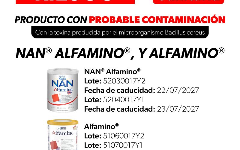 Morelia, Michoacán, 8 de enero de 2026.- La Comisión Federal para la Protección contra Riesgos Sanitarios (Cofepris), a través de la Secretaría de Salud de Michoacán (SSM), informa a la población sobre el retiro voluntario del mercado que realiza la empresa Nestlé México de los productos NAN®️ Alfamino®️ y Alfamino®️, ambos en presentación de 400 gramos. Esta medida precautoria se lleva a cabo debido a la probable contaminación con una toxina producida por el microorganismo Bacillus cereus en uno de los ingredientes utilizados en los lotes implicados, lo que podría representar un riesgo para la salud, especialmente en lactantes. Los productos involucrados corresponden exclusivamente a los siguientes números de lote y fechas de caducidad: • NAN®️ Alfamino®️ • Lote 52030017Y2, caducidad 22/07/2027 • Lote 52040017Y1, caducidad 23/07/2027 • Alfamino®️ • Lote 51060017Y2, caducidad 30/04/2027 • Lote 51070017Y1, caducidad 30/04/2027. Ante esta situación, Cofepris recomienda a la población no adquirir ni consumir los productos y lotes antes mencionados. En caso de haberlos adquirido, suspender de inmediato su uso y consultar a un profesional de la salud. Contactar a la empresa Nestlé México para recibir orientación y seguimiento a través de su sitio oficial de atención al consumidor. La Cofepris y la SSM reiteran que el retiro se limita únicamente a los lotes señalados y se mantienen acciones de vigilancia y control sanitario para salvaguardar la salud de la población.