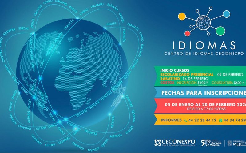 Morelia, Michoacán, 13 de enero de 2026.- El Centro de Convenciones y Exposiciones de Morelia (Ceconexpo), a través de su Centro de Idiomas, inició el proceso de inscripciones para el ciclo 2026, con una oferta académica que incluye inglés, francés, alemán, italiano y chino para niñas, niños, adolescentes y adultos en niveles de principiantes, intermedios y avanzados. Las inscripciones permanecerán abiertas hasta el 20 de febrero de 2026 y el inicio de clases para la modalidad escolarizada presencial será el 9 de febrero, mientras que los cursos en modalidad virtual los sábados comenzarán el 14 de febrero. El costo de la inscripción es de 400 pesos, mientras que la colegiatura se fijó en 600 pesos. La duración del curso es de 3 años. La institución busca que el aprendizaje de una segunda lengua sea una herramienta que impulse las metas personales, profesionales y académicas de la población michoacana. Con esta acción, se abren puertas a nuevas oportunidades de desarrollo para los diversos sectores de la entidad. Para mayores informes, las personas interesadas pueden comunicarse al teléfono 443 232 44 12 o vía mensaje de WhatsApp al 443 474 2986. También se encuentra disponible la información detallada en el siguiente enlace https://www.facebook.com/cdiceconexpo Las inscripciones se llevan a cabo en las oficinas de idiomas ubicadas temporalmente en el Expocentro. Es importante comunicarse primero a los teléfonos proporcionados, ya que el proceso inicia con una valoración diagnóstica para determinar el nivel de dominio del idioma; una vez obtenido el resultado, se les presentarán las opciones académicas disponibles que mejor se adapten a sus necesidades.